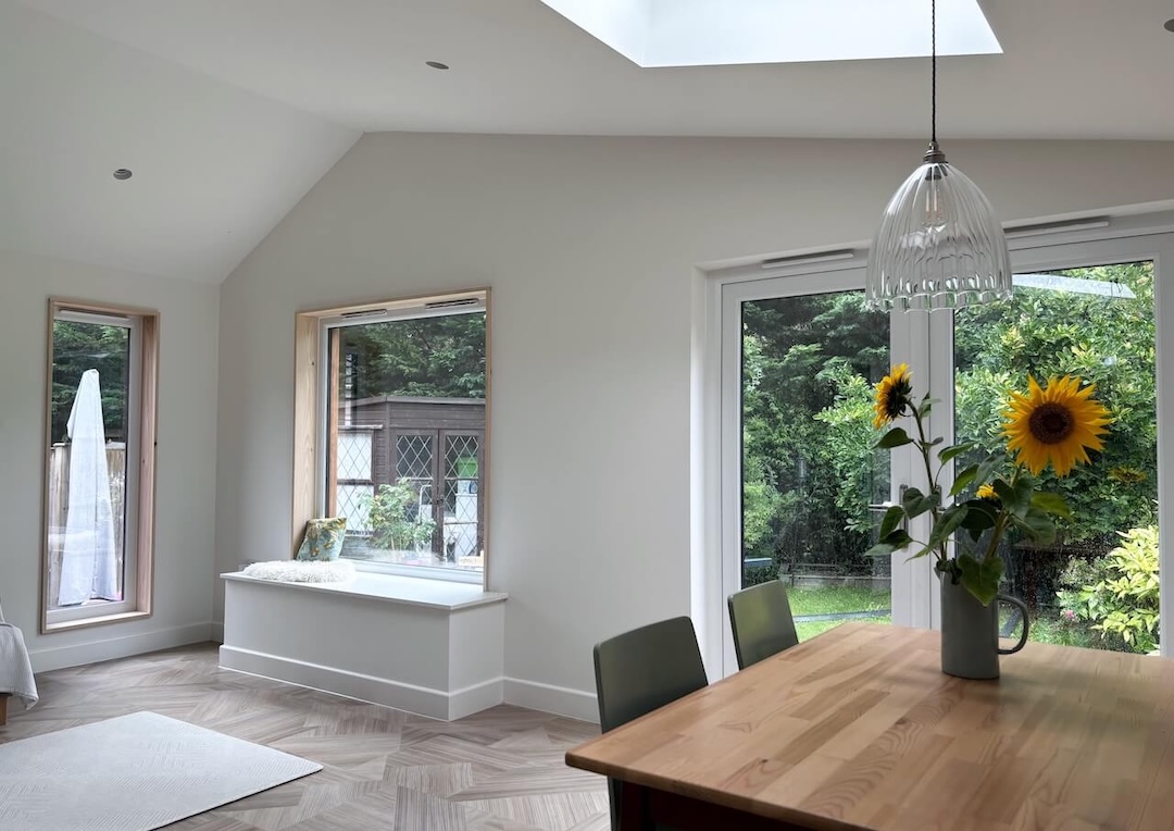 A primary goal of this timber-clad rear extension was to increase natural light while preserving privacy from neighbouring properties. This was achieved through the careful placement of glazing, including large Cortizo windows and sliding doors, which fill the interior with daylight. These elements also allow for cross-ventilation, promoting a comfortable indoor environment during warmer months.