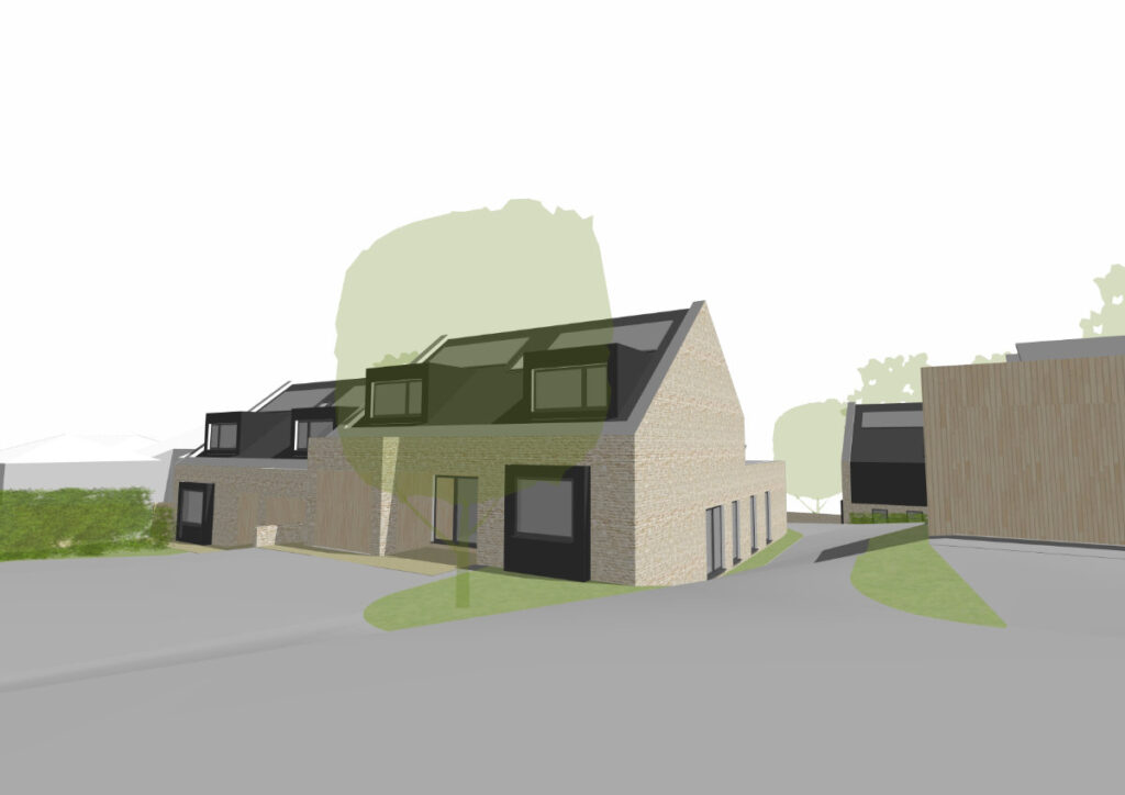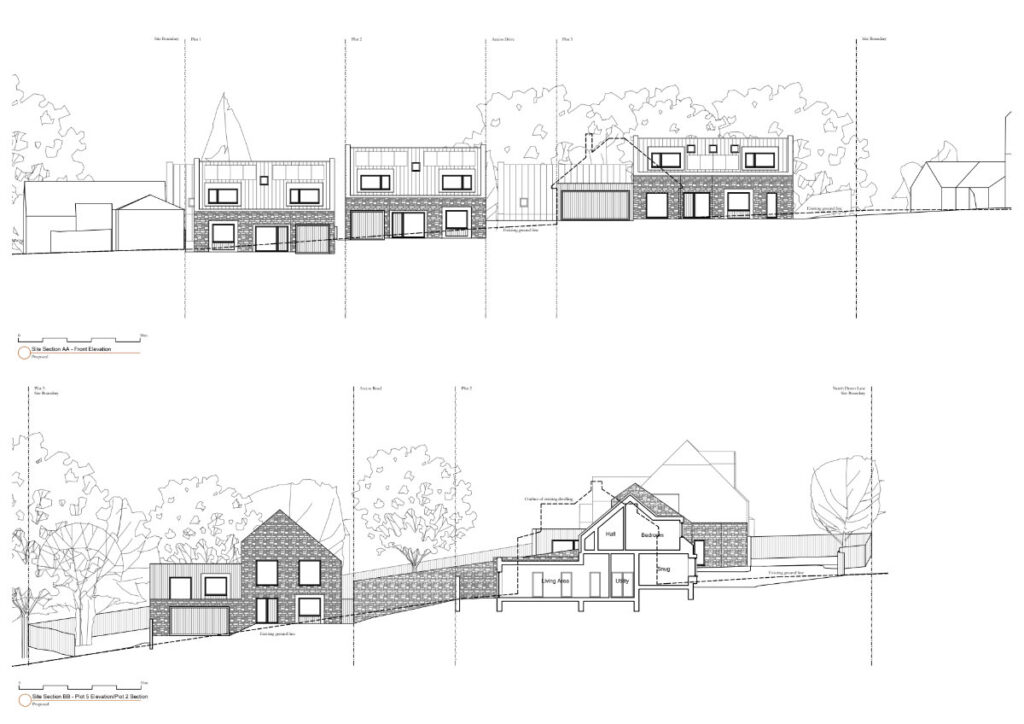 This development introduces five new homes within a spacious, landscape-led setting on North Down Lane. The site is defined by mature boundary trees, neighbouring properties and the natural slope of the land, all of which shaped the overall layout and architectural response. The existing dwelling held limited architectural value, and its replacement provides an opportunity to improve the visual quality and coherence of the village edge.